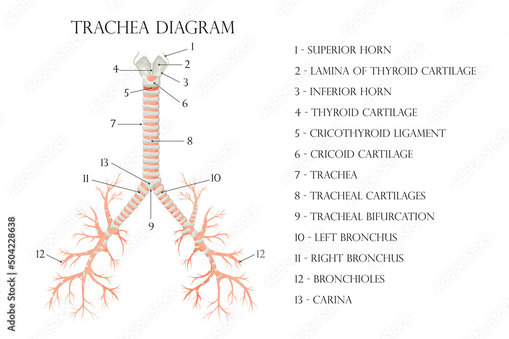 Vector Medical Educational Biological Chart For Trachea Diagram Anatomy Illustration Isolated White Background Stock Vector Adobe Stock